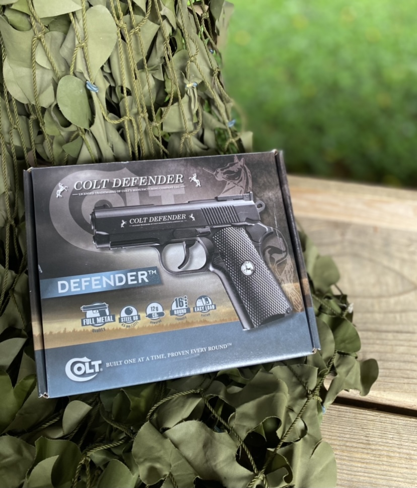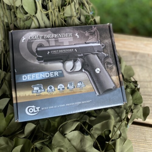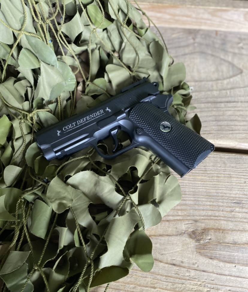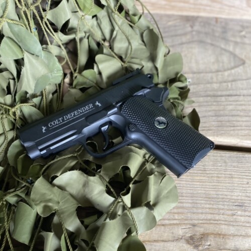 - Looks and feels like the Colt Defender compact 1911 firearm.